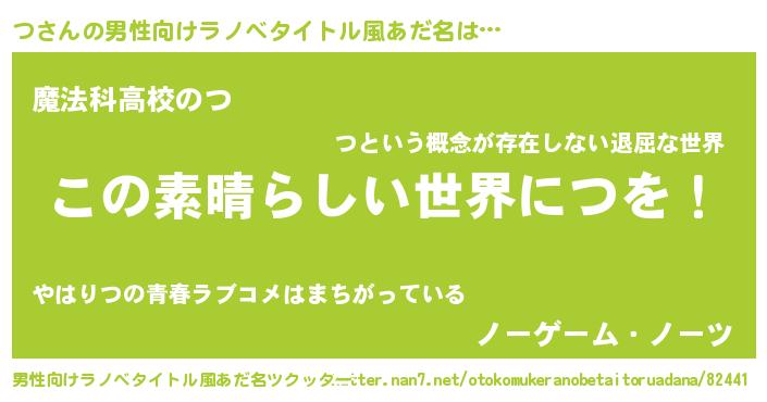 | 女子向けラノベタイトル風あだ名 | 『乙女ゲームの破滅フラグしかない悪役つに転生してしまった…』 |