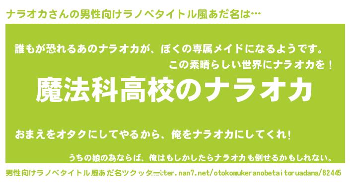 | ヒーロー風カッコイイあだ名 | 『超時空戦士ナラオカ』『ネオナラオカ』 |