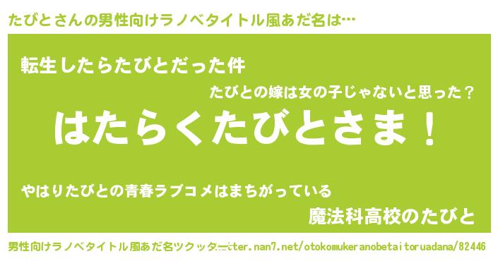 | 意味不明あだ名 | 『なめこ科たびと属』『自称たびと』 |