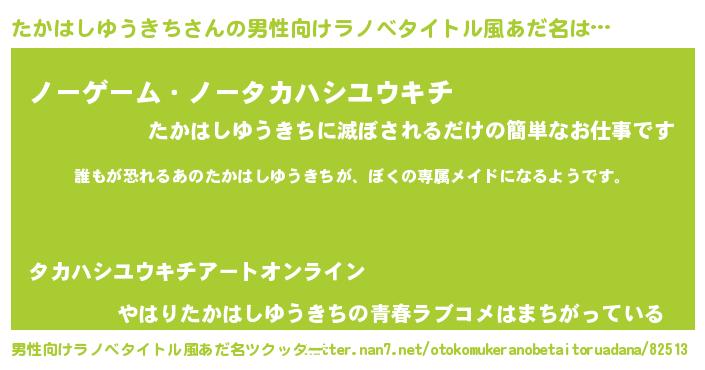 | ヘコむあだ名 | 『たかはしゆうきち(爆)』『酢こんぶ』 |