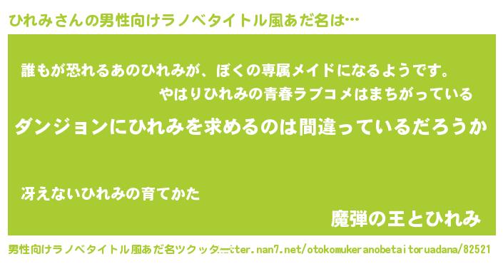 | 女子向けラノベタイトル風あだ名 | 『ひれみは平凡を望む』 |