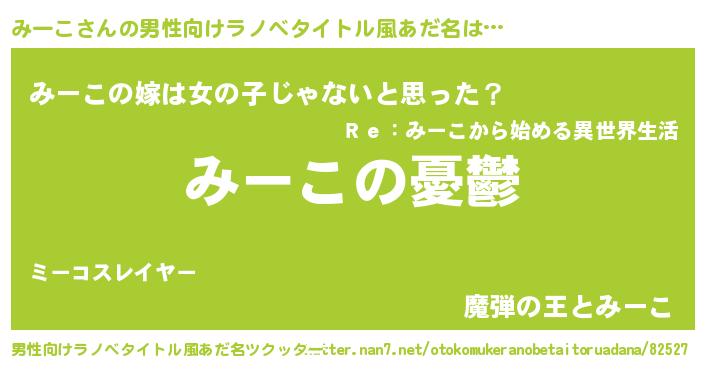 | 女子向けラノベタイトル風あだ名 | 『みーこ姫と円卓の騎士』 |