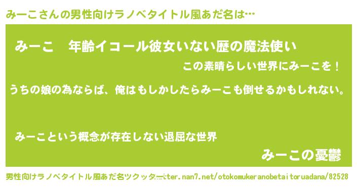 | 女子向けラノベタイトル風あだ名 | 『みーこの婚約者』 |
