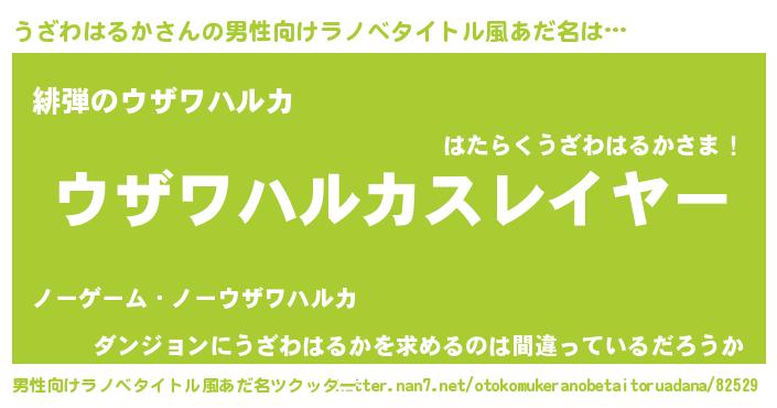 | ヒーロー風カッコイイあだ名 | 『暗黒騎士ウザ』『ネオウザワハルカ』 |