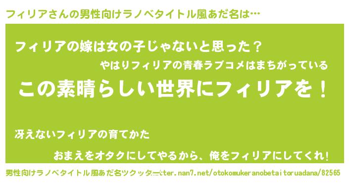 | 意味不明あだ名 | 『住所不定無職フィリア(59歳)』 |