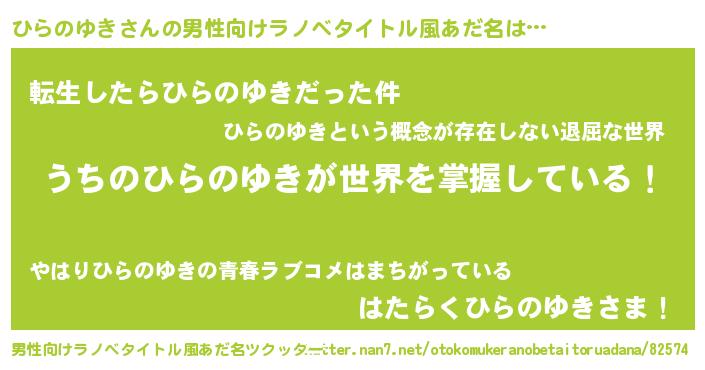 | ヘコむあだ名 | 『ひらのゆき(笑)』『豆乳』 |