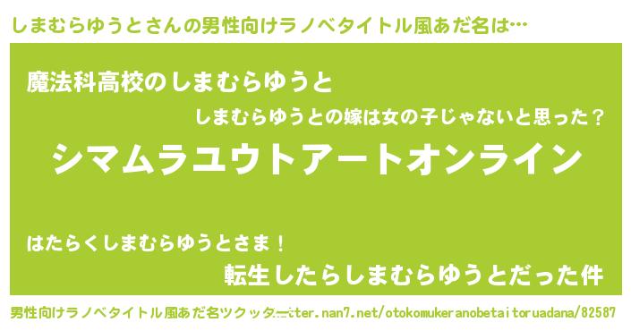 | 女子向けラノベタイトル風あだ名 | 『誰かこのしまむらゆうとを説明してください! ~契約から始まるウェディング~』 |
