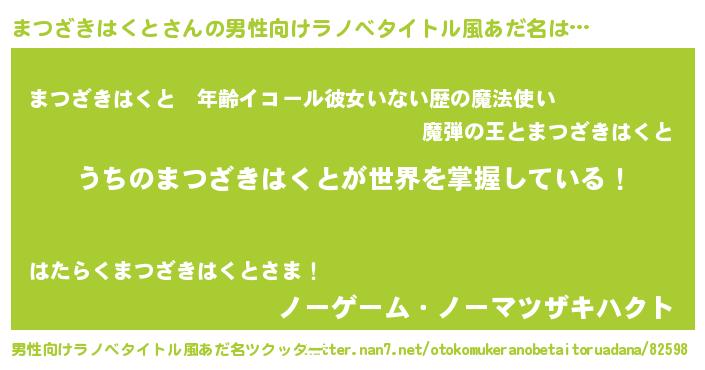 | 女子向けラノベタイトル風あだ名 | 『男装まつざきはくとの憂鬱な任務』 |