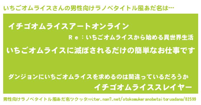 | 胡散臭い通販商品みたいなあだ名 | 『億万長者になれるブレスレット…その名も「いちごオムライス」』 |