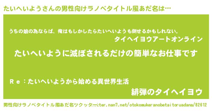 | ファンタジー風あだ名 | 『エターナルタイヘイヨウー』 |