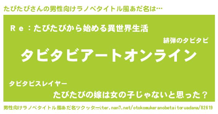 たびたびさんの男性向けラノベタイトル風あだ名をツクッター!
