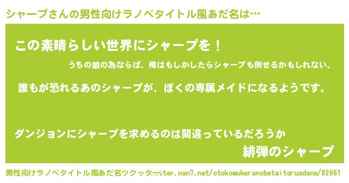 | 女子向けラノベタイトル風あだ名 | 『シャープの契約王妃』 |