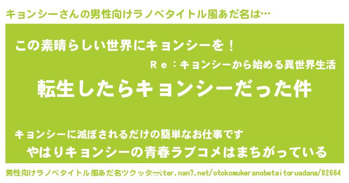 | 意味不明あだ名 | 『もやし科キョンシー属』 |