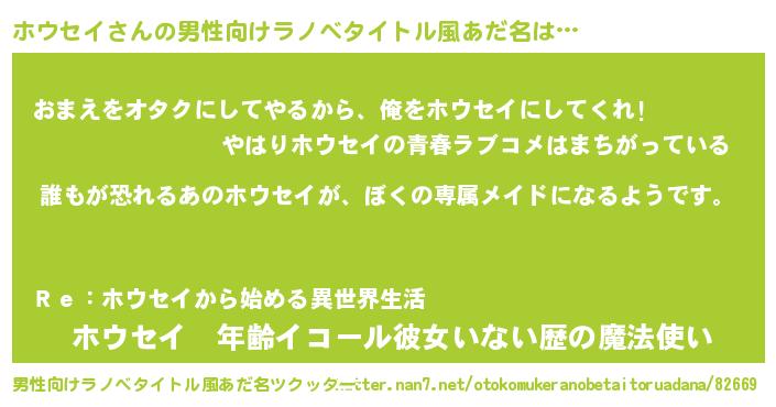 | 意味不明あだ名 | 『永久保存ホウセイ』『自称ホウセイ』 |