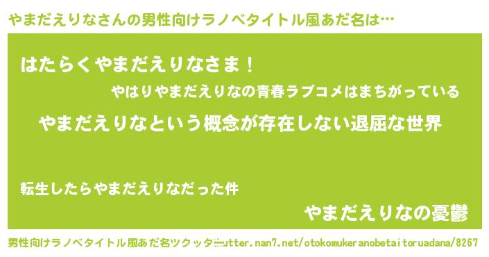 | 女子向けラノベタイトル風あだ名 | 『異世界で失敗しない100のやまだえりな』 |