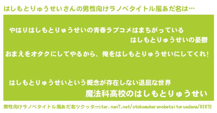 | 女子向けラノベタイトル風あだ名 | 『はしもとりゅうせい恋絵巻』 |