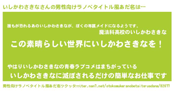 | ヘコむあだ名 | 『いしかわさきな(震え声)』『酢こんぶ』 |