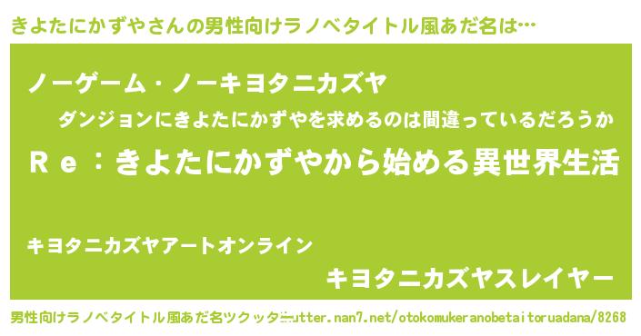 きよたにかずやさんの男性向けラノベタイトル風あだ名をツクッター!