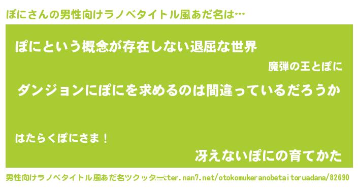 | 女子向けラノベタイトル風あだ名 | 『ぽにの卵を拾いまして』 |