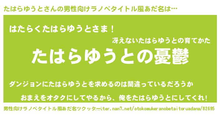 | 女子向けラノベタイトル風あだ名 | 『(仮)たはらゆうとのやんごとなき事情』 |