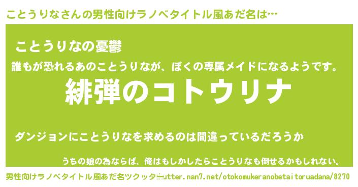 | 胡散臭い通販商品みたいなあだ名 | 『必ず成功するブレスレット…その名も「ことうりな」』 |