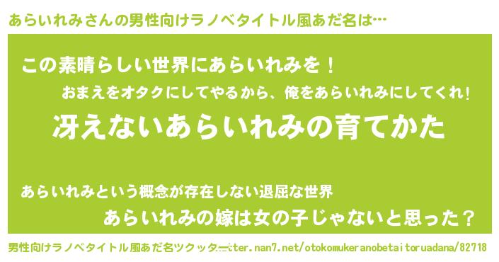 | 意味不明あだ名 | 『住所不定無職あらいれみ(81歳)』 |