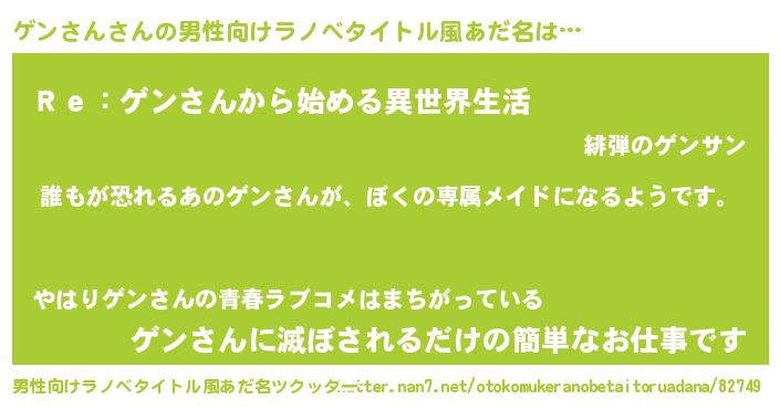 | 胡散臭い通販商品みたいなあだ名 | 『来世でも幸せになれる健康食品…その名も「ゲンさん」』 |