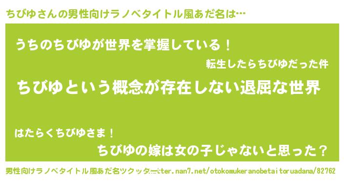 | 女子向けラノベタイトル風あだ名 | 『異世界で失敗しない100のちびゆ』 |