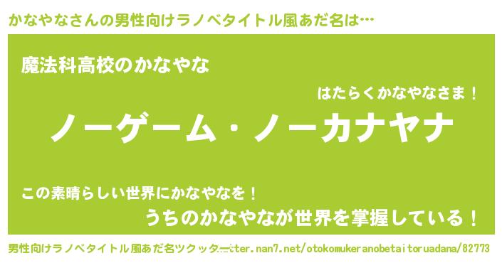 | 女子向けラノベタイトル風あだ名 | 『かなやな恋絵巻』 |