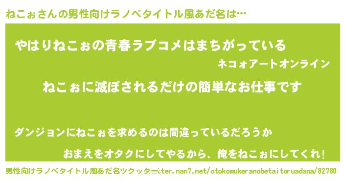 | ヘコむあだ名 | 『なまこ酢』『ねこっふぃ~』 |