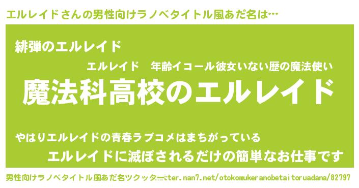 | 恥ずかしいあだ名 | 『エルレイドデラックス』『エルっちょ』 |