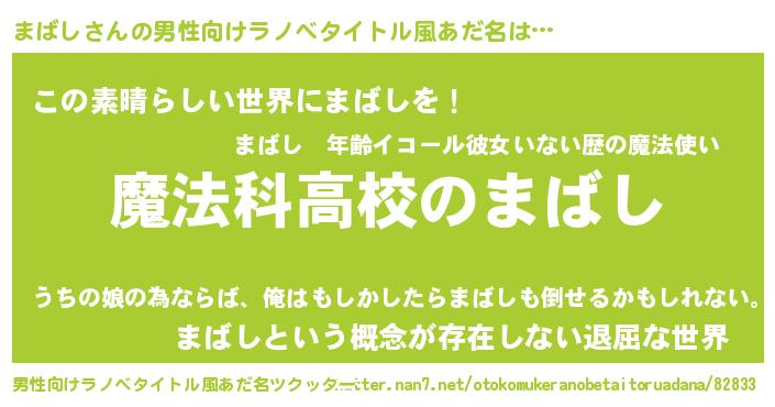 | 女子向けラノベタイトル風あだ名 | 『まばしなんてお断りですっ。』 |