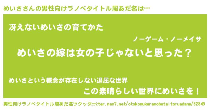 めいささんの男性向けラノベタイトル風あだ名をツクッター!