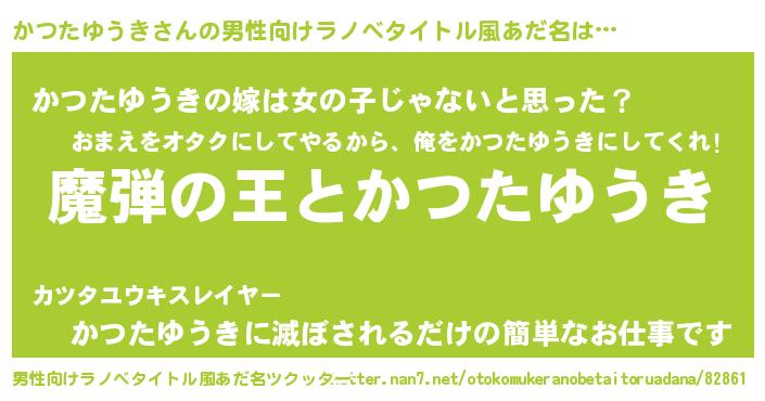 | 女子向けラノベタイトル風あだ名 | 『かつたゆうきが死なない童話 林檎のかつたゆうきの診療簿』 |