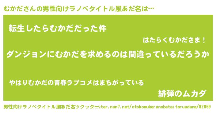 | 女子向けラノベタイトル風あだ名 | 『むかだは平凡を望む』 |