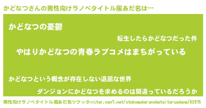 | 胡散臭い通販商品みたいなあだ名 | 『幸せが訪れる高級そうな絵画…その名も「かどなつ」』 |