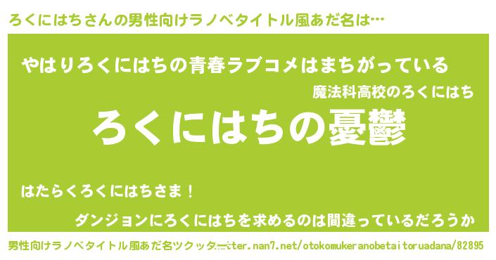 | 女子向けラノベタイトル風あだ名 | 『ろくにはち姫と円卓の騎士』 |