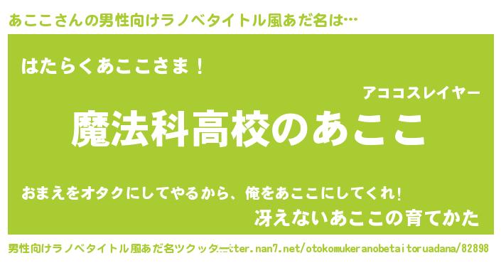| ヒーロー風カッコイイあだ名 | 『サイバー戦士アココ』『魔戒騎士アコ』 |