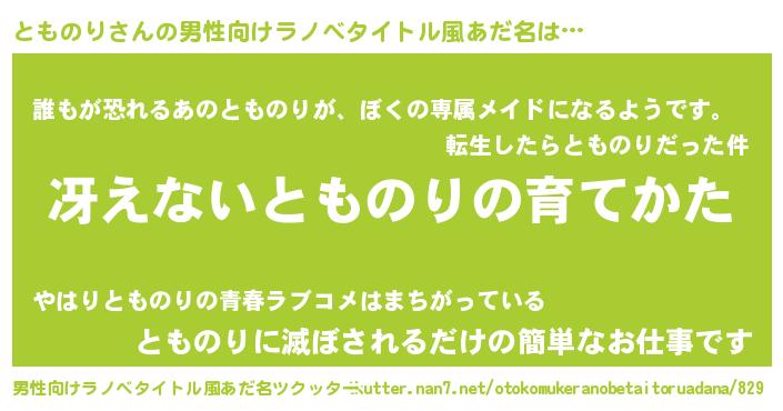 | 胡散臭い通販商品みたいなあだ名 | 『来世でも幸せになれる水素水…その名も「とものり」』 |