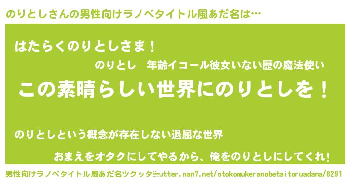 | 女子向けラノベタイトル風あだ名 | 『悪役のりとしに転生したようですが、知った事ではありません』 |