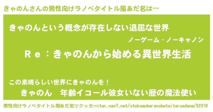| 女子向けラノベタイトル風あだ名 | 『闇のきゃのん』『死神きゃのんの再婚』 |