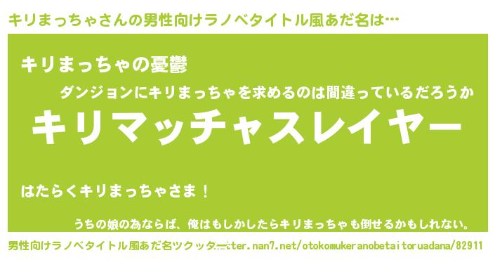 | ヒーロー風カッコイイあだ名 | 『スーパーキリマッチャ』『天弓騎士キリ』 |