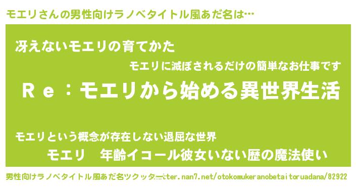 | 意味不明あだ名 | 『自称モエリ』『もやし科モエリ属』 |