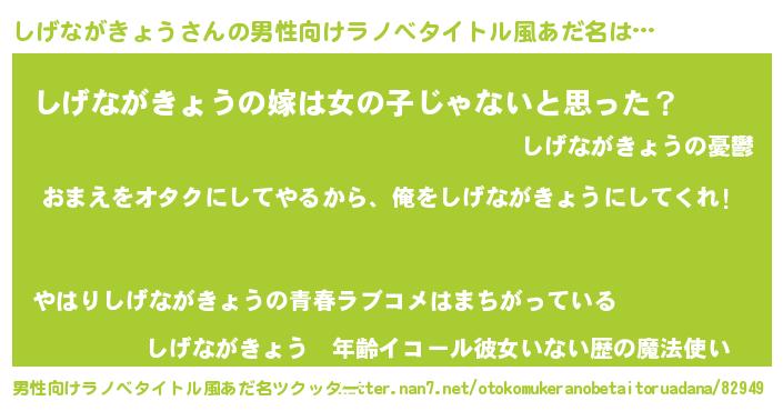 | 肩書あだ名 | 『しげながきょう助教授』 |