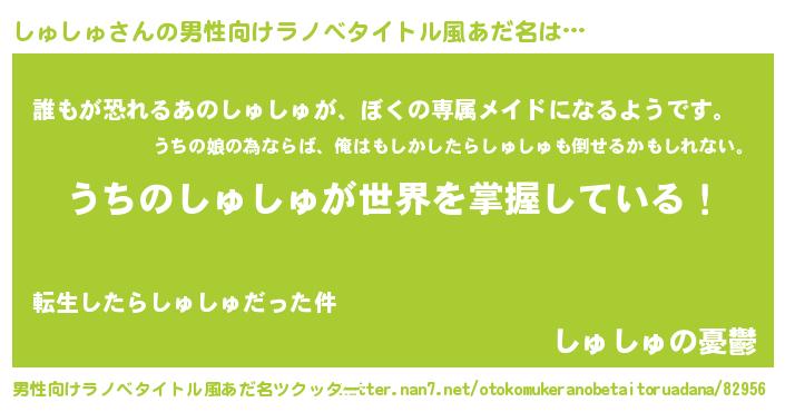 | ヘコむあだ名 | 『しゅしゅ(小並感)』『しゅにゅー』 |