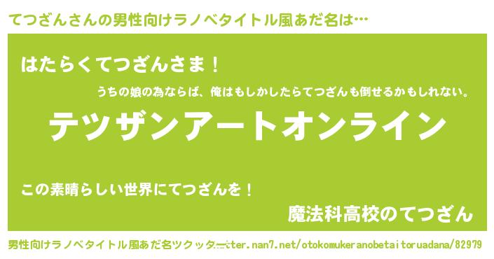 | 胡散臭い通販商品みたいなあだ名 | 『億万長者になれるブレスレット…その名も「てつざん」』 |