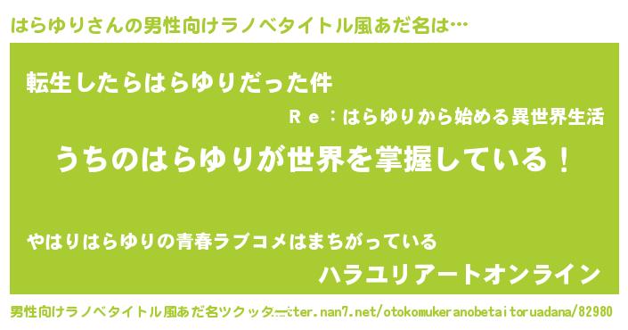 | ヘコむあだ名 | 『はらにゅー』『なまこ酢』『はらを』 |
