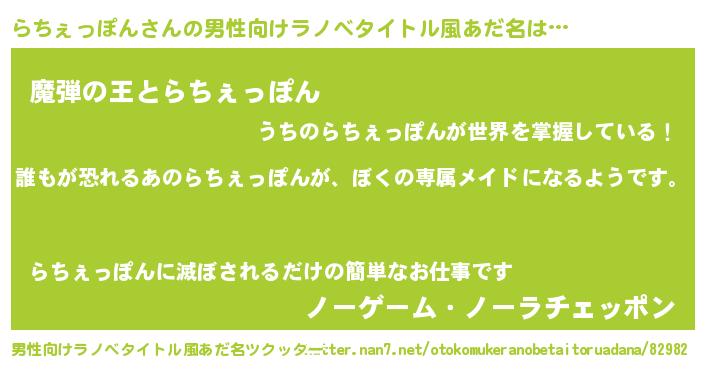 | 意味不明あだ名 | 『永久保存らちぇっぽん』 |