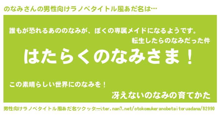 | ヒーロー風カッコイイあだ名 | 『ネオノナミ』『仮面ノナダー』 |