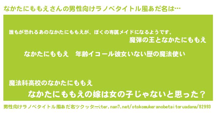 女子向けラノベタイトル風あだ名 | 『なかたにももえの玉の輿計画!』 |